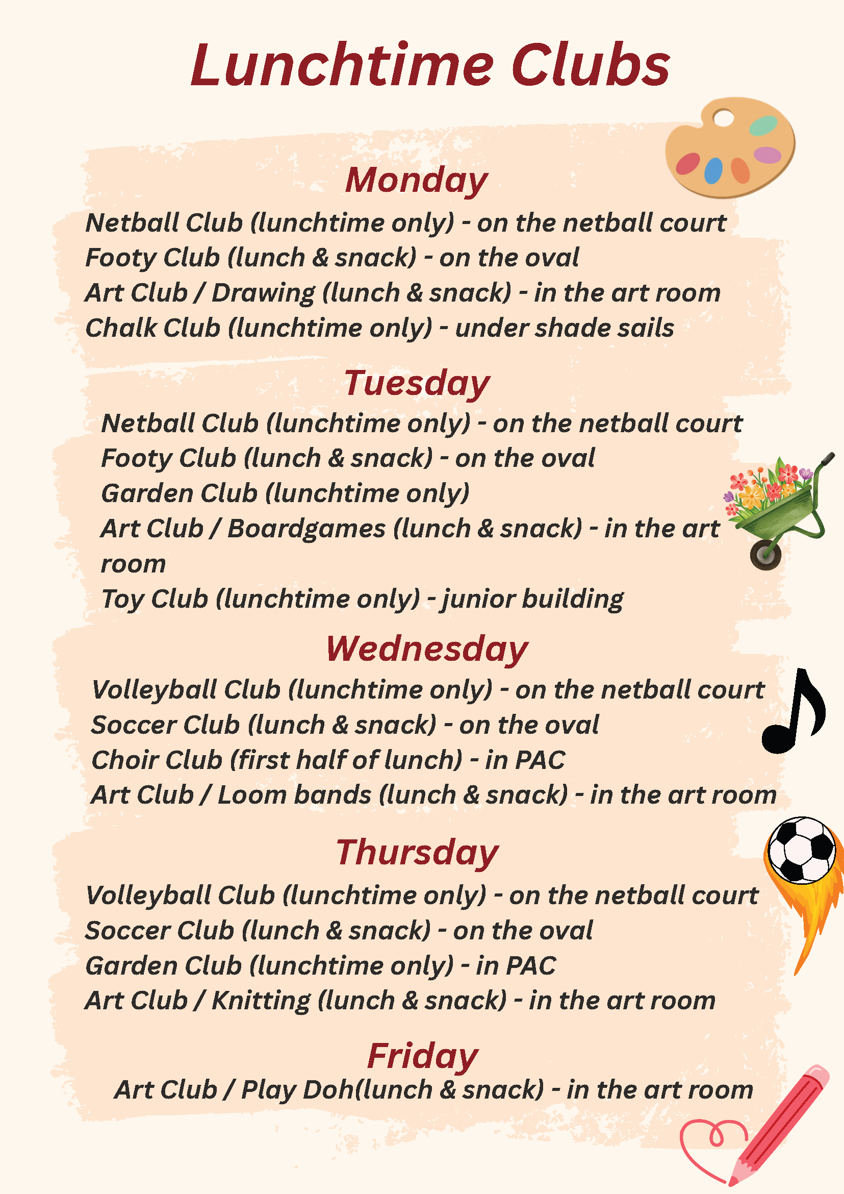Whether your child loves getting active on the oval, being creative in the art room, or trying something new with friends, our lunchtime clubs are a great way to connect, create and have fun!