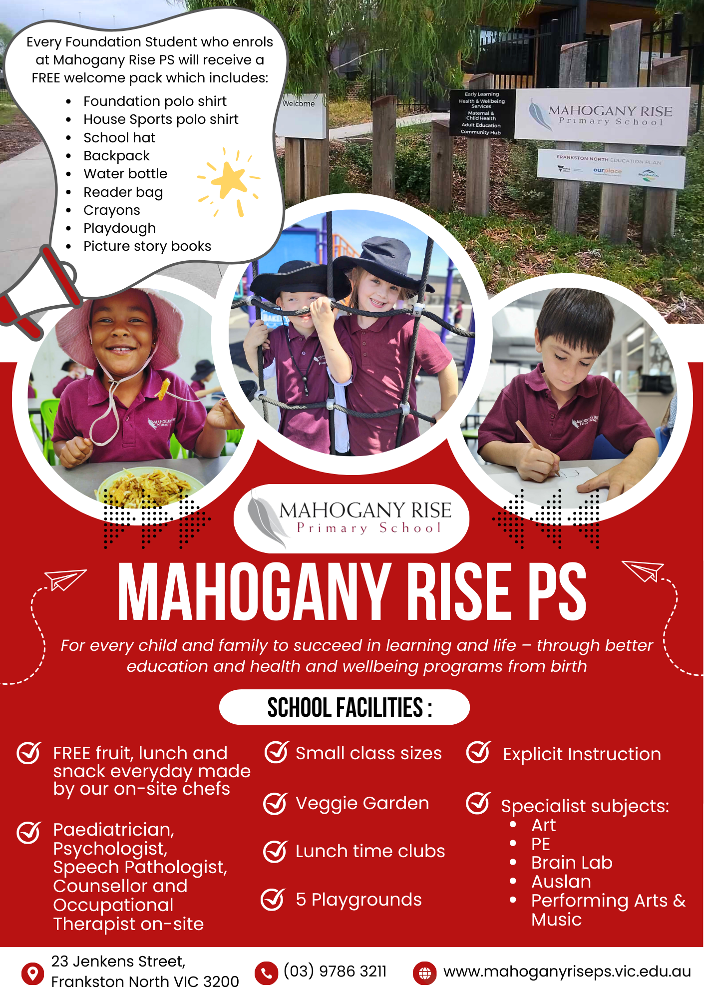 We are excited to share that Mahogany Rise Primary School is now taking online enrolments for Foundation in 2027.